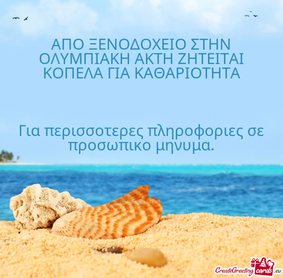 Ζητειται καθαριστρια για το ξενοδοχειο Βlue Dream στην ΟλυΑΠΟ ΤΟ ΞΕΝΟΔΟΧΕΙΟ ``ΒLUE DREAM`` ΣΤΗΝ ΟΛΥΜΠΙΑΚΗ ΑΚΤΗ ΖΗΤΕΙΤΑΖητειται κοπελα για καθαριοτητα απο ξενοδοχειο στην ΟΖητειται κοπελα για καθαριοτητα απο το ξενοδοχειο BLUE DRZ