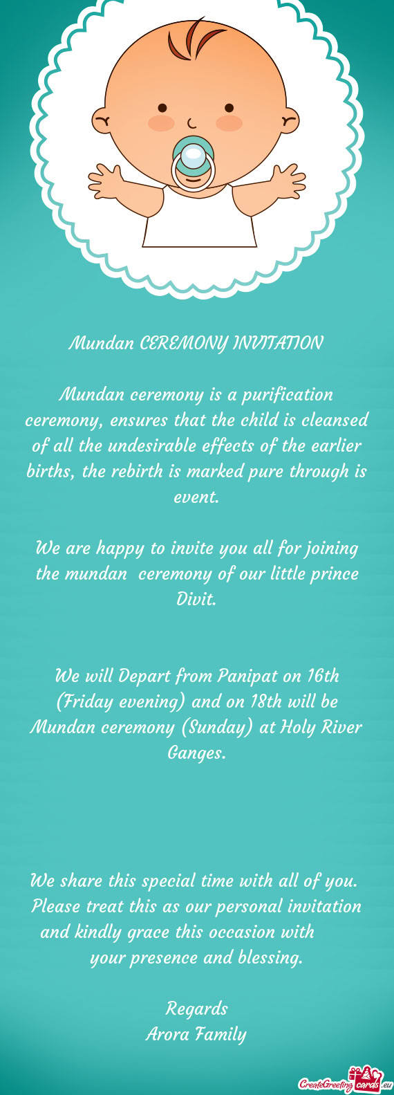 We are happy to invite you for joining the Sataisa Ceremony of our beloved baby boy.