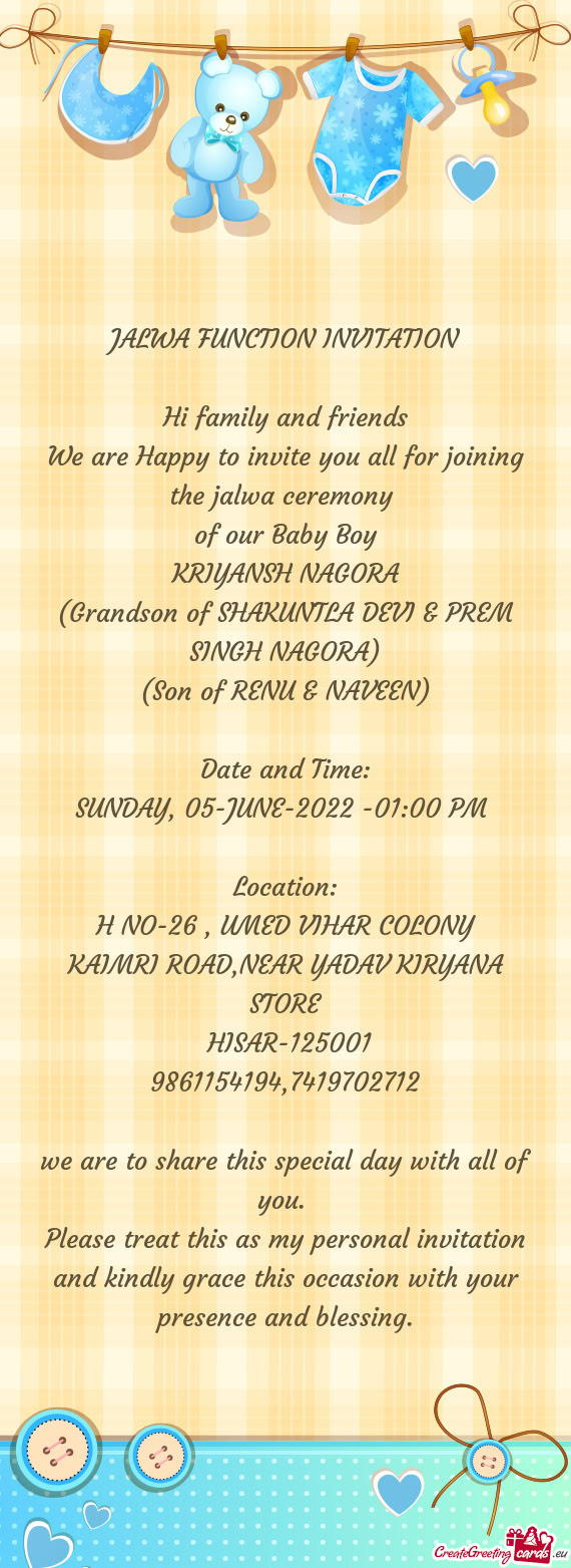 We are happy to invite you all for joining the Chhathi ceremony of your