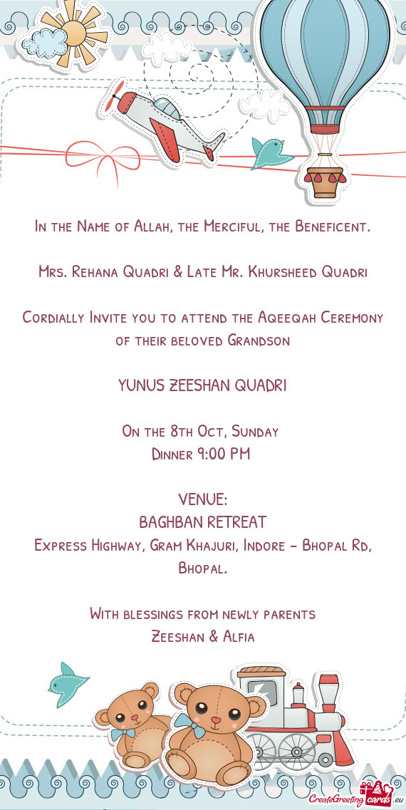 Please treat this as my personal invitation and kindly grace this occasion with your presence and blessings.