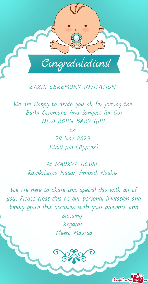 We warmly invite everyone to attend our little child Chola ceremony and bless our child.