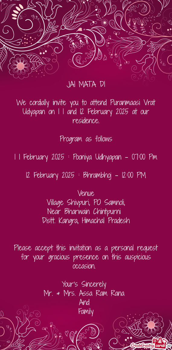 Kindly accept this message invitation as a personal request for your gracious presence.
