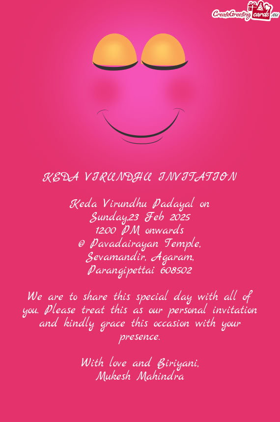 Please treat this as our personal invitation and kindly grace this occasion with your presence.