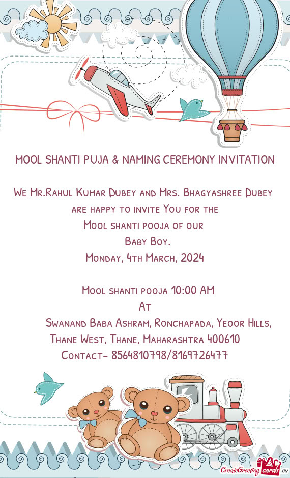 We are happy to invite you all for Joining the naming ceremony of our baby boy