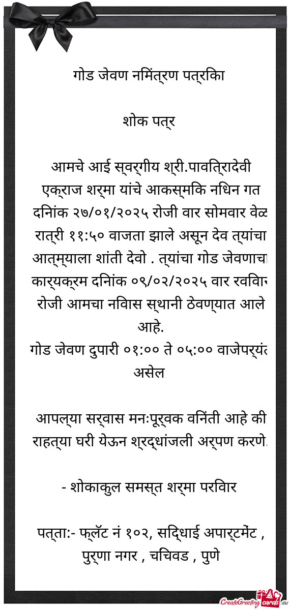 तेरहवीं संस्कार सूचना निमंत्रण सन्देश