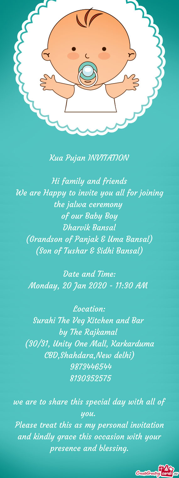 We are Happy to invite you all for joining the Chhathi Ceremony of our beloved baby girl