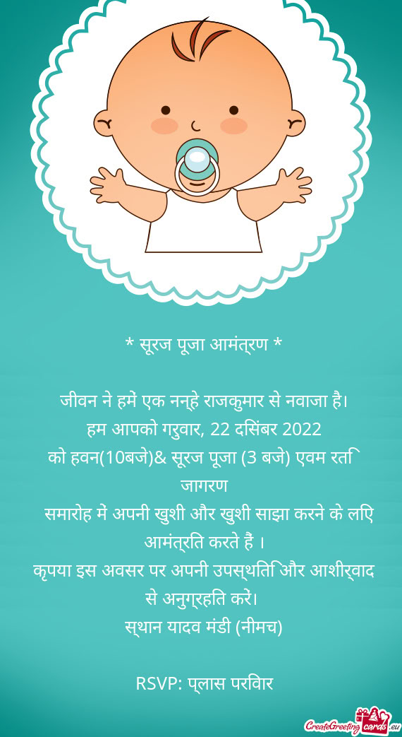 We are Happy to invite you all for joining the Chhathi Ceremony of our beloved baby boy with Dinner