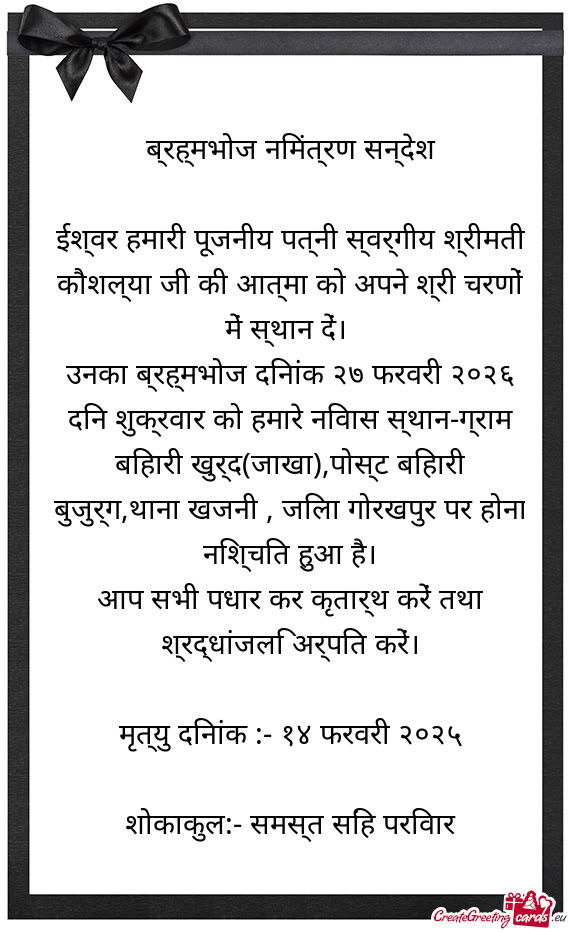 ਭੋਗ ਅਤੇ ਅੰਤਿਮ ਅਰਦਾਸ ਆਪ ਜੀ ...