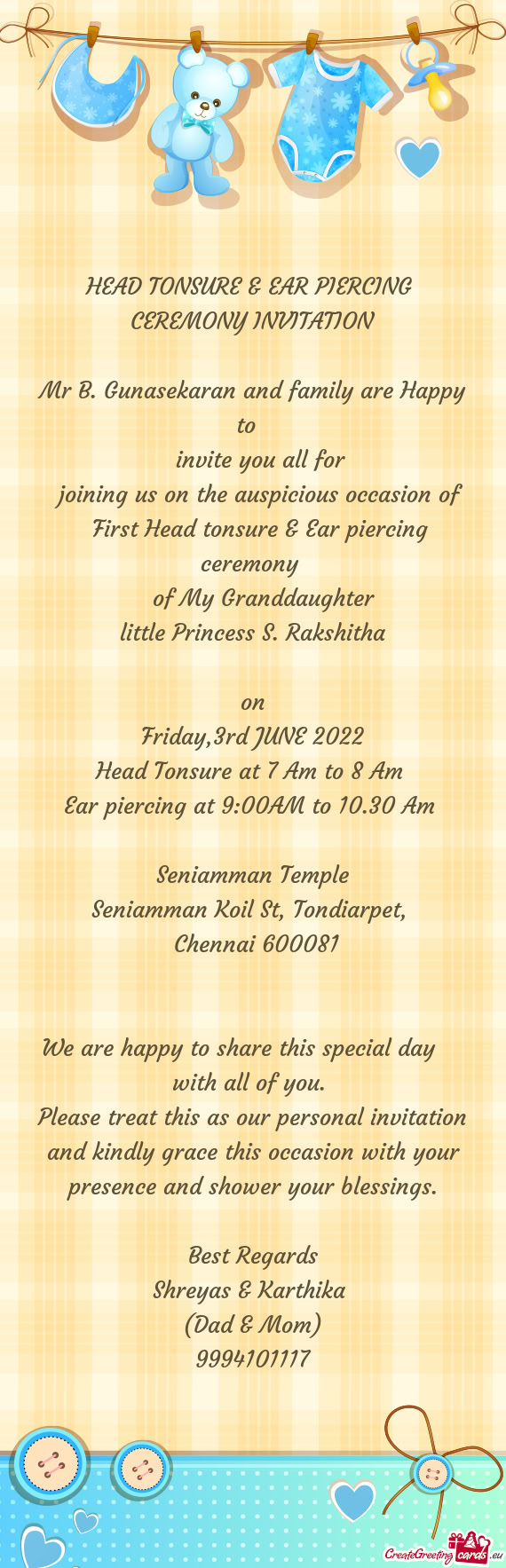 Please treat this as our personal invitation and kindly grace this occasion with your presence and blessing.