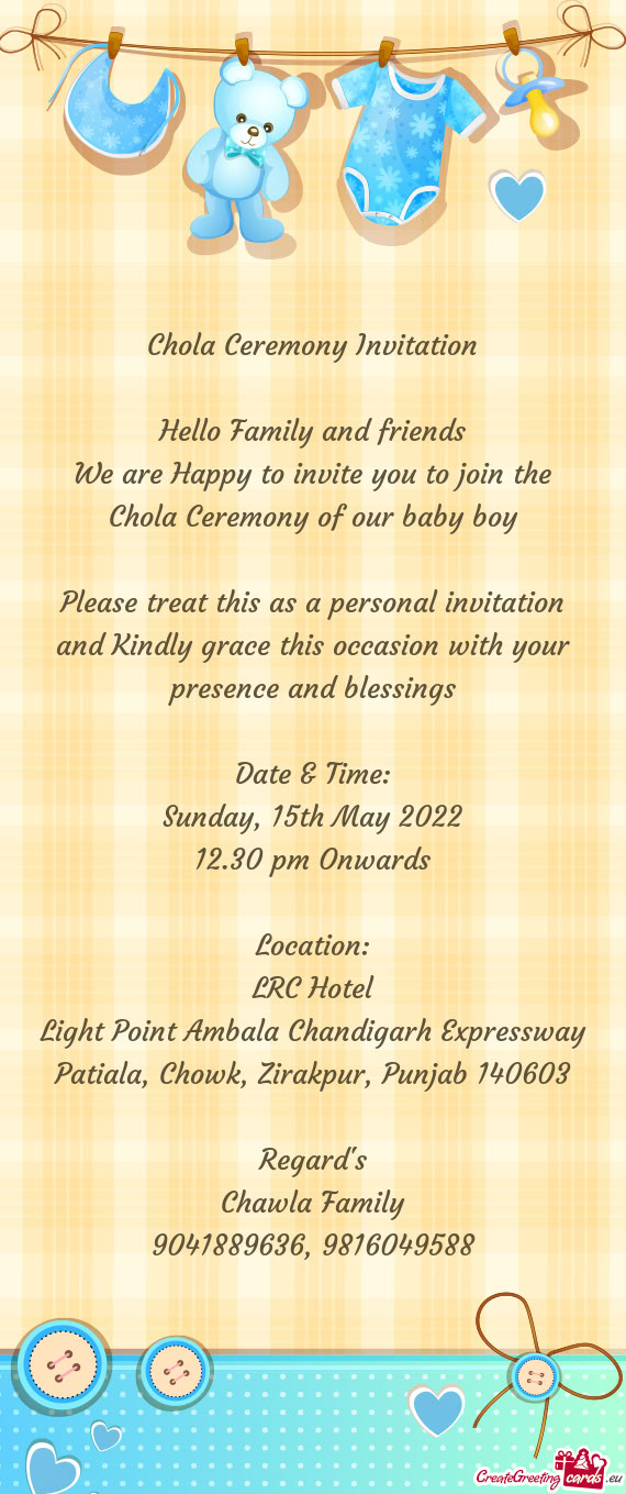 We are happy to invite you to the Annaprashan ceremony of our baby girl Suvigya Tyagi onSyed Hamza Nasir Quadri(Grate Grand Son of Mrs. Munni devi & Shri Lakhi Ram Nambardar)MR & MRS SIVA & LALITHAItish KhareProud Dakka
