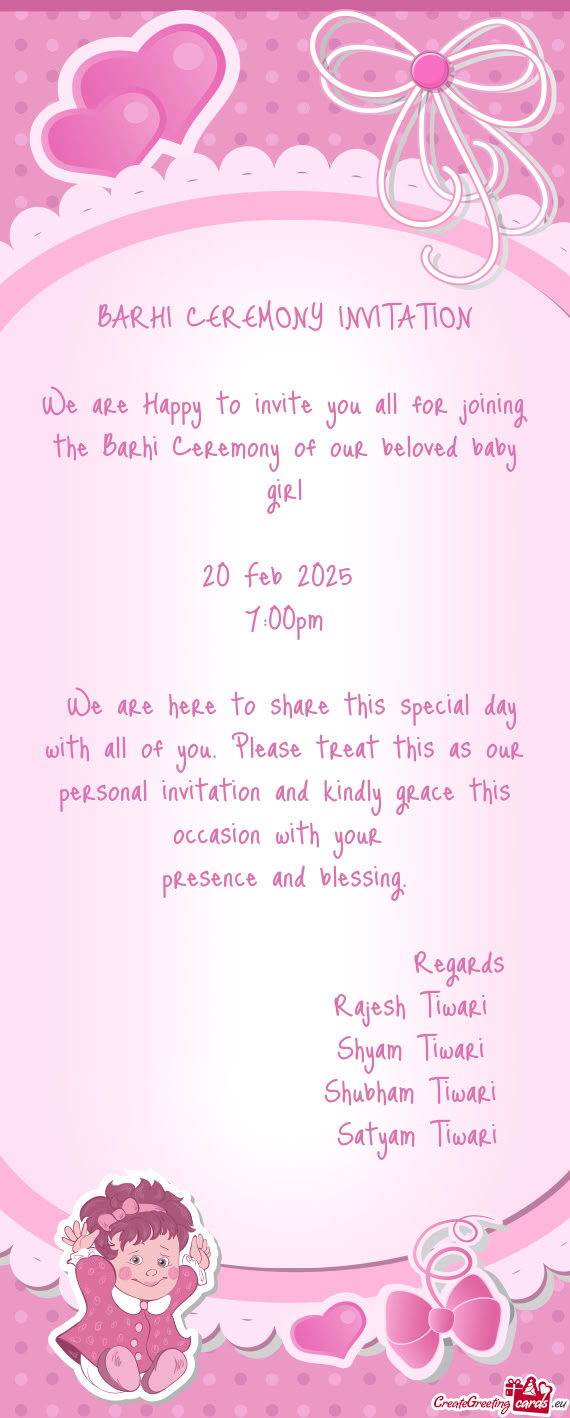 Name me and we want you and your family to share our happiness together, so please be there to blessed me when i get named......