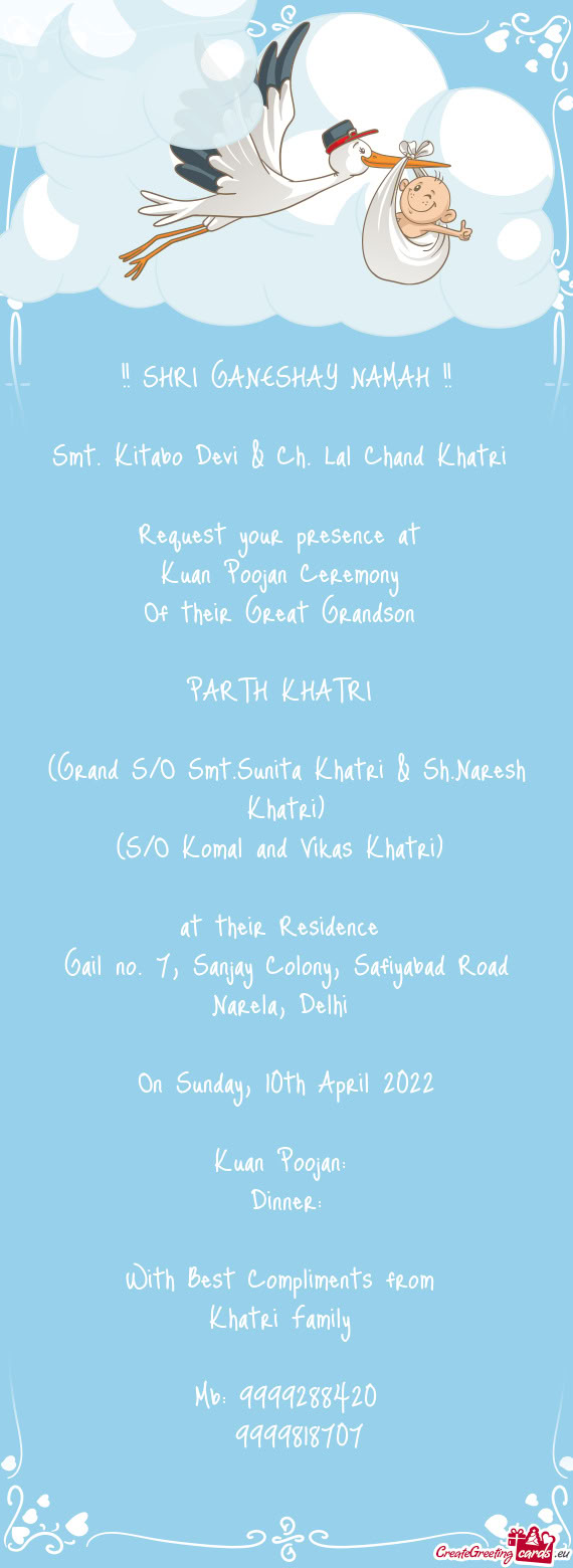 My mom & dad have decided to name me and we want you & your family to share our happiness together.