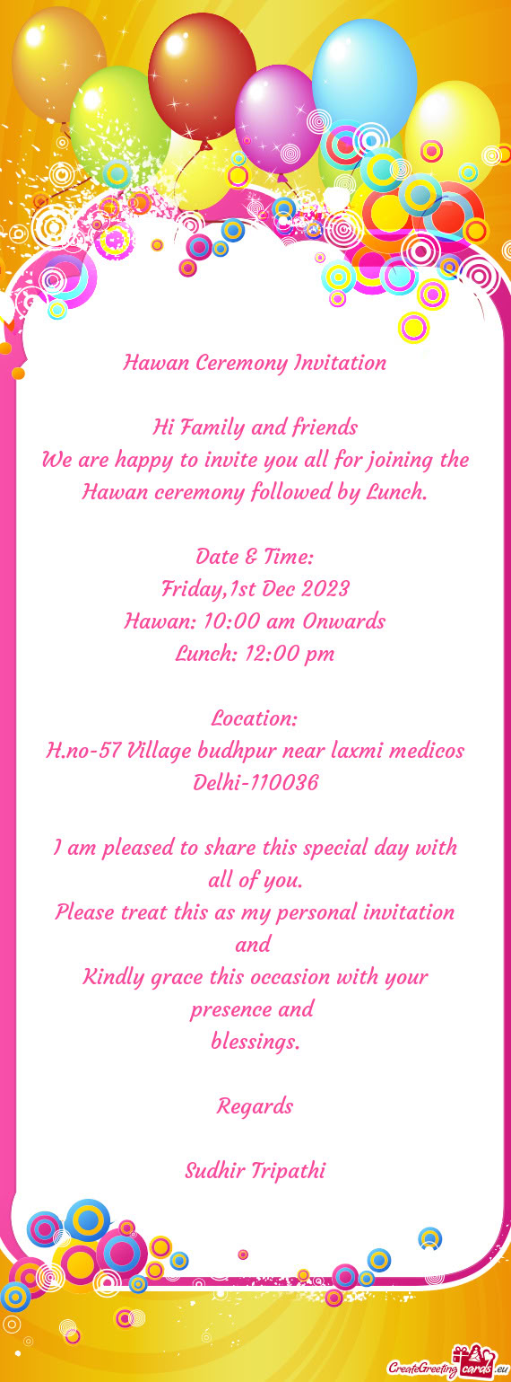 Please treat this as our personal invitation and kindly grace this occasion with your presence and blessings.