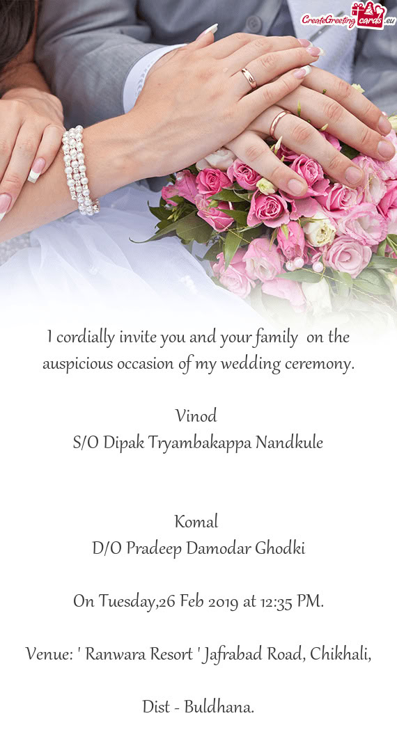 Please treat this as my personal invitation and join us to make our golden moments precious by your charming presence