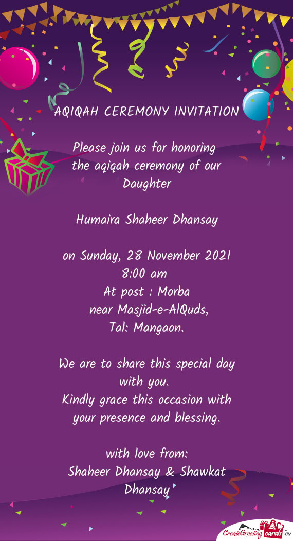 We wish to share this special day with all of you. Please treat this as our personal invitation and kindly grace the occasion with your presence and blessings.