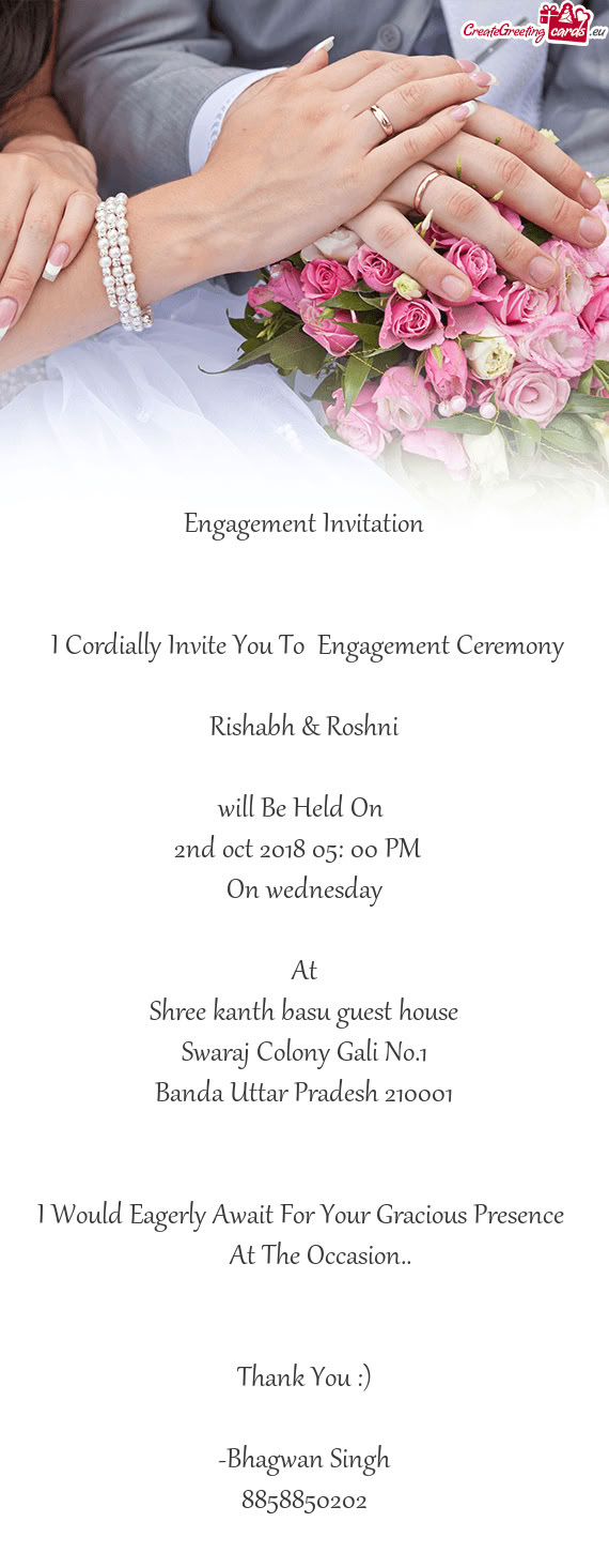 It gives us immense pleasure to invite you for the shagun and ring ceremony of