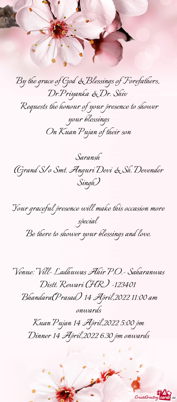 Please join us for the evening of devotional bhajans. Your presence will be a joy for me.