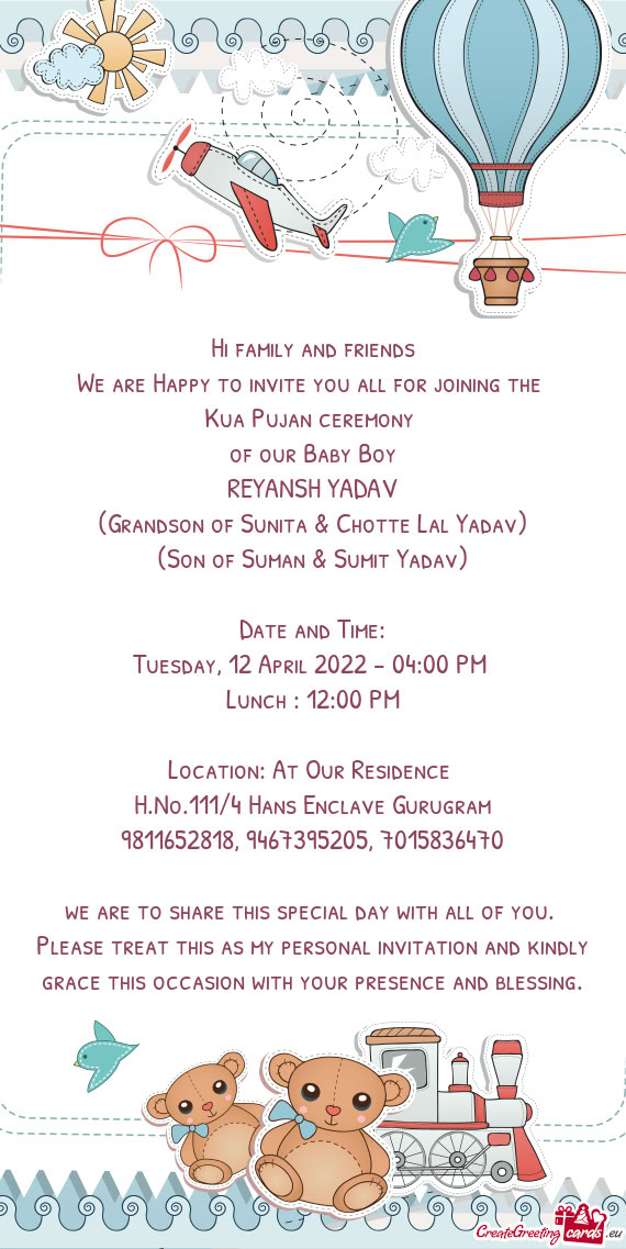 Your graceful presence will make this occasion more special. Be there to shower your blessings and love.