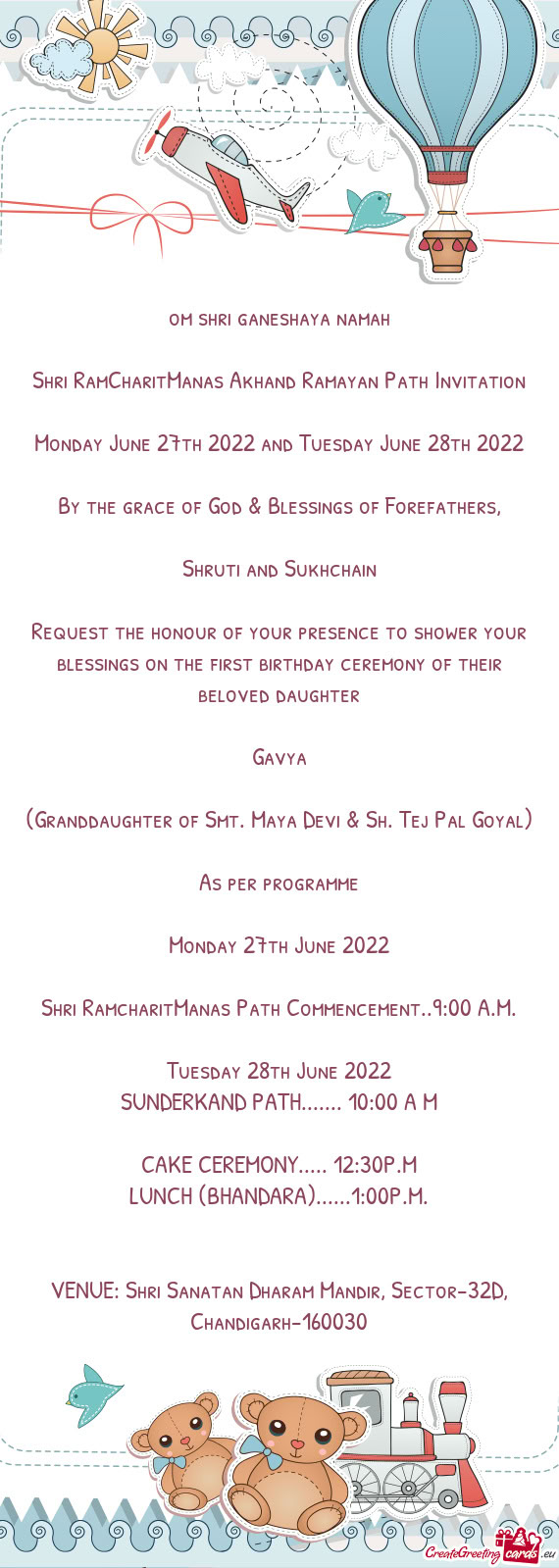 Please treat this as my personal invitation and kindly grace this occasion with your presence and blessing.