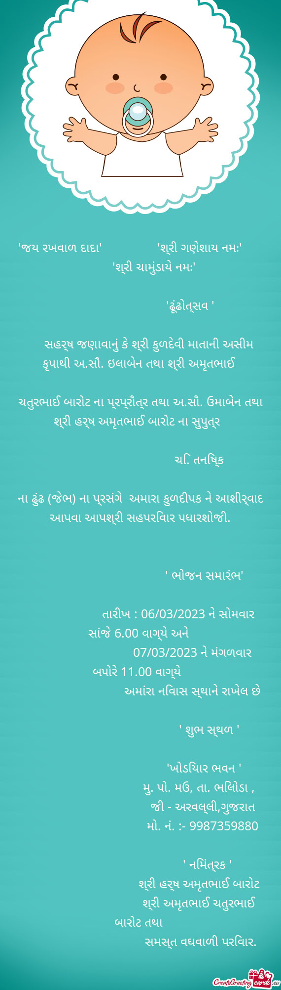 We are Happy to invite you all for joining the Chatti Ceremony of our beloved baby boy