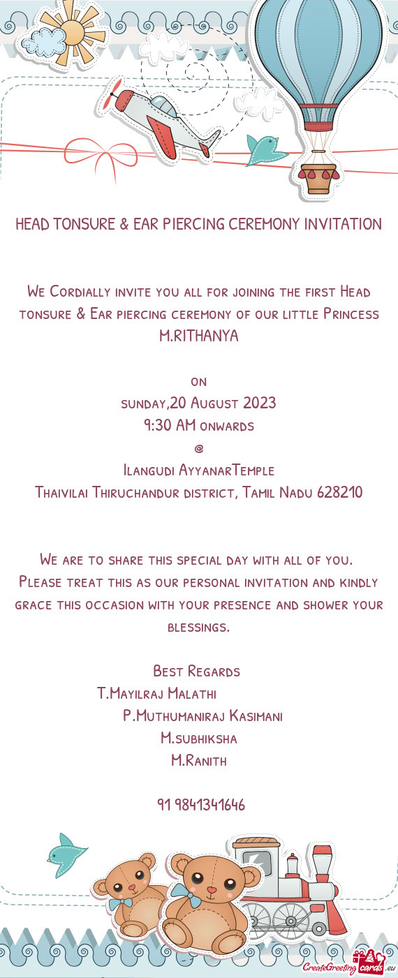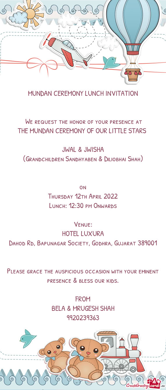 Please treat this as my personal invitation and kindly grace this occasion with your presence and blessing.