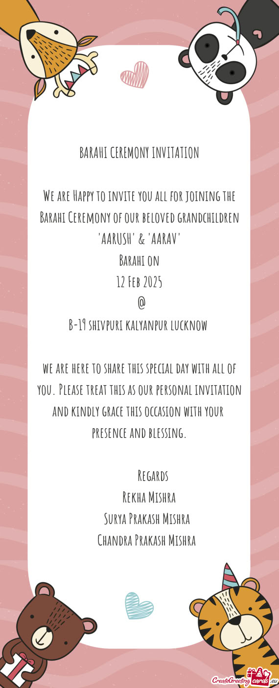 Please treat this as my personal invitation and kindly grace this occasion with your presence and blessing.