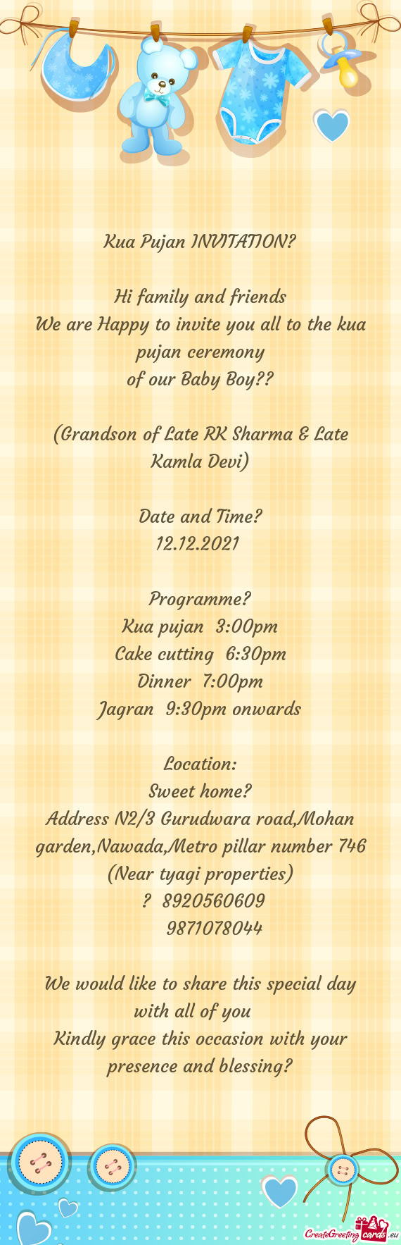 Please treat this as my personal invitation and kindly grace this occasion with your presence and blessings.