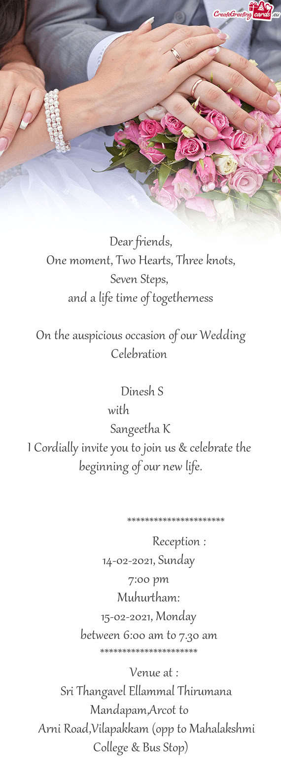 Please treat this as my personal invitation and join us to make our golden moments precious by your charming presence