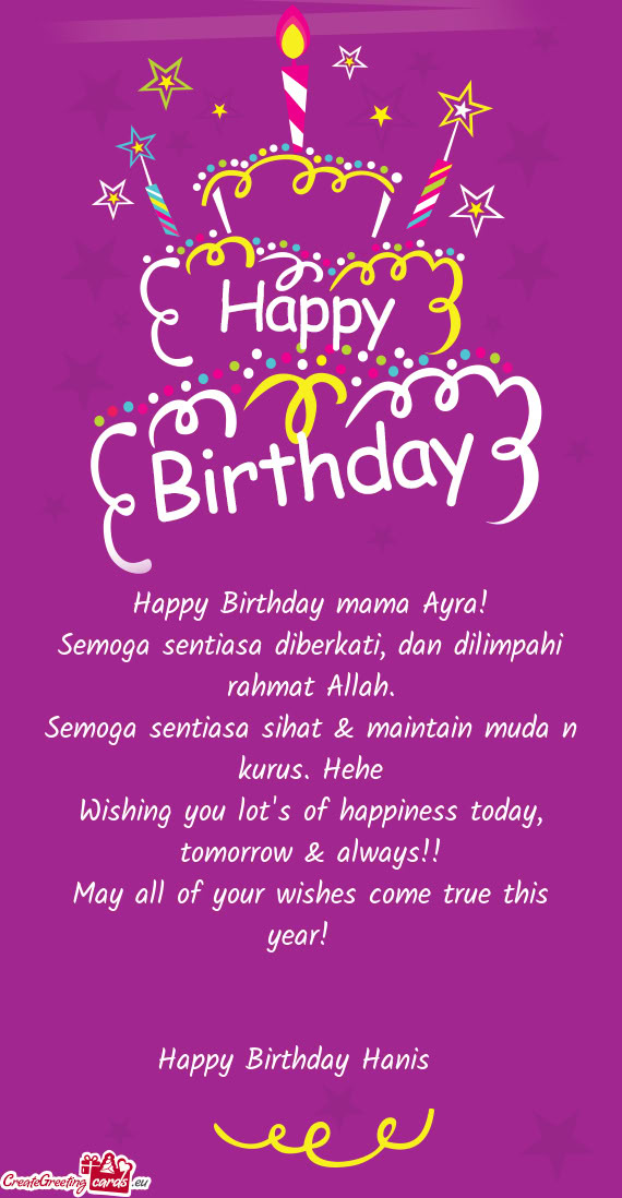 May God Bless you grant you all your dreams. Enjoy your day and the life ahead.