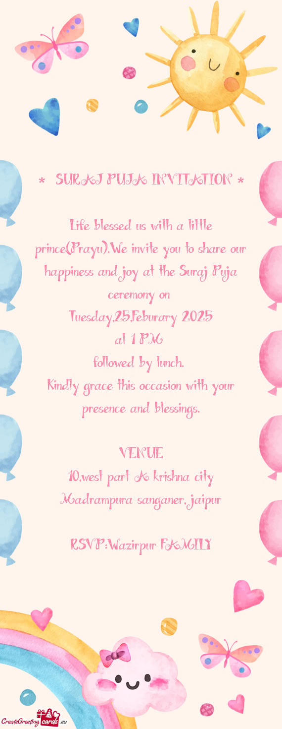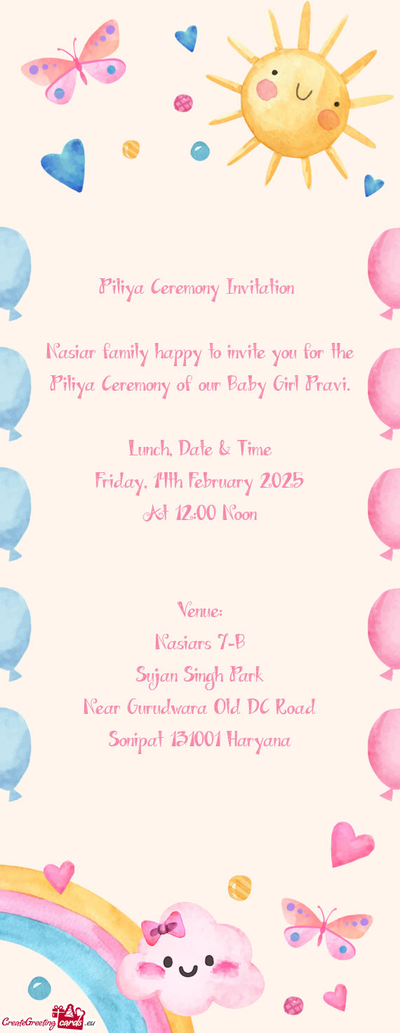 We are pleased to invite you to join us for the Hawan ceremony of our baby girl.