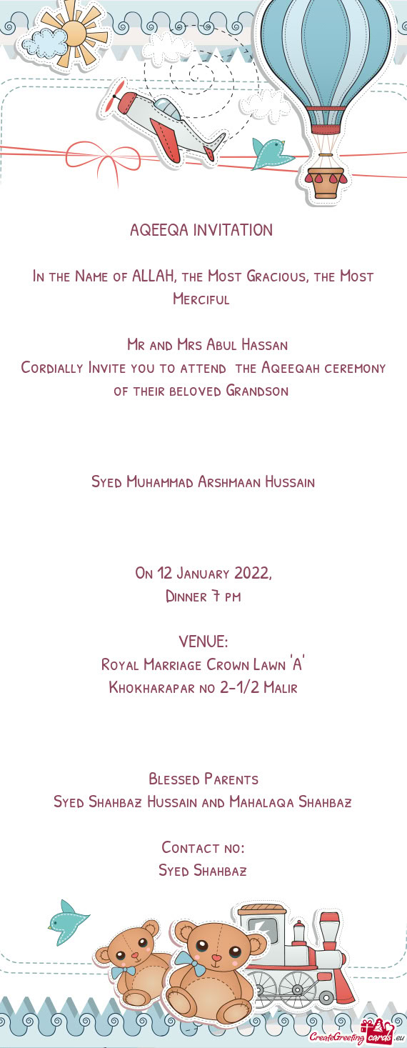 Please treat this as my personal invitation and kindly grace this occasion with your presence and blessing.
