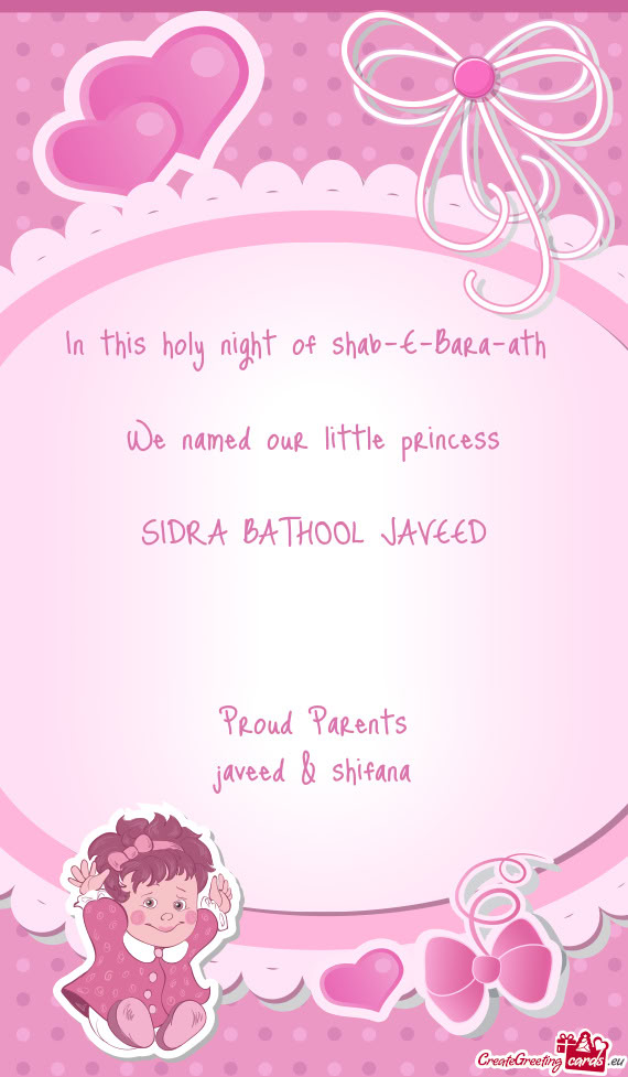 We are happy to invite you to attend the *AQEEQAH CEREMONY* of our baby girl