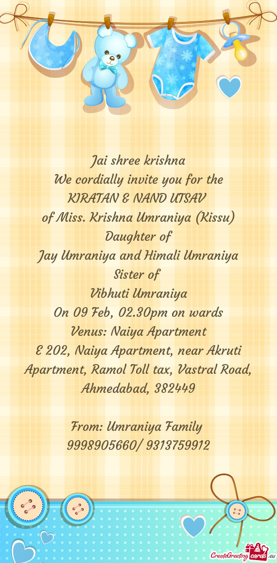 Please treat this as our personal invitation and kindly grace this occasion with your presence and blessings.