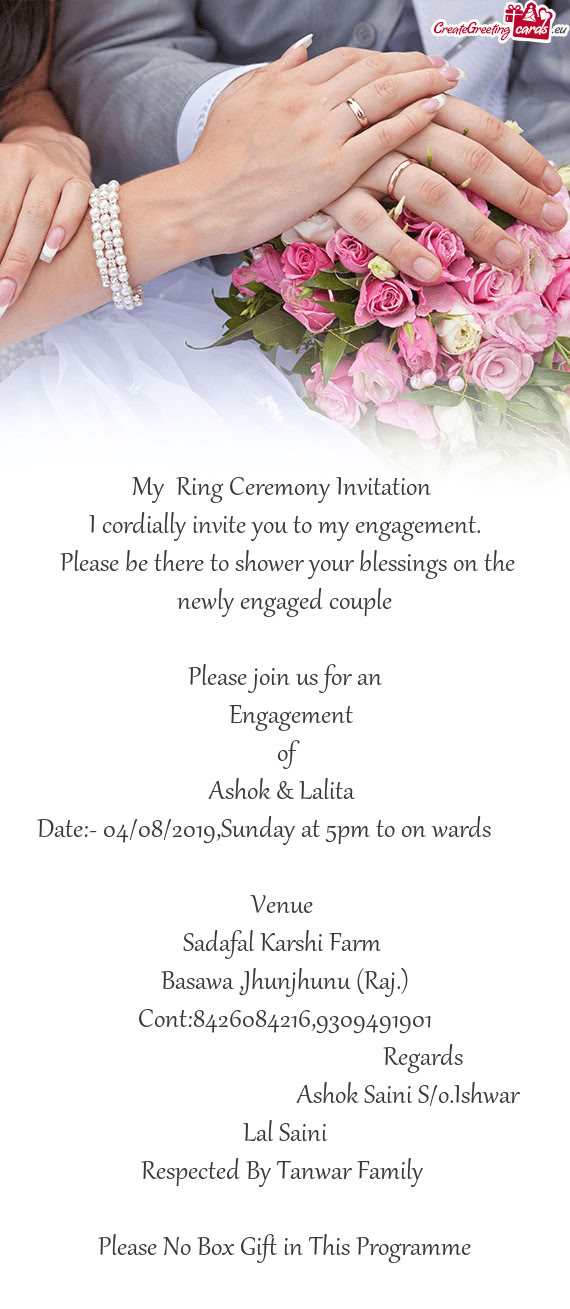 We request the pleasure of your company at lunch to celebrate the jal vidhi Ceremony of