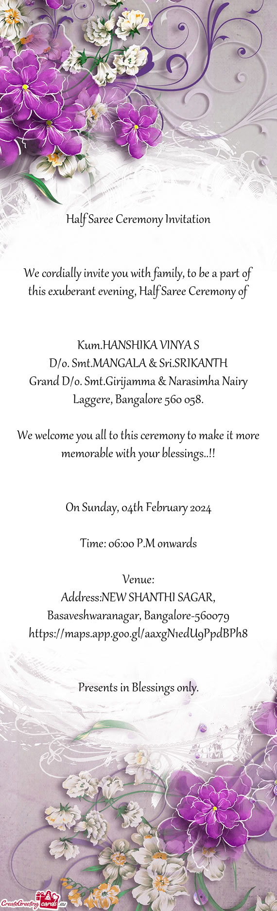 We cordially invites you to be a part of this exuberant evening Manjal Neeratu Vizha of