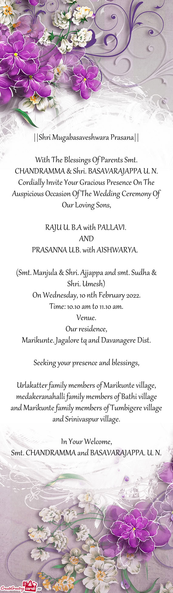 Please treat this as our personal invitation and grace this occasion with your presence.