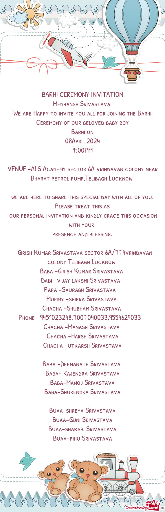 We are Happy to invite you all for joining the naming ceremony of our newly born baby Boy