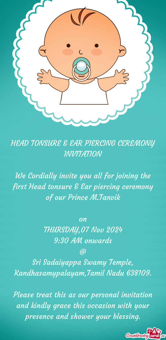 We Cordially invite you all for joining the first Head tonsure & Ear piercing ceremony of our