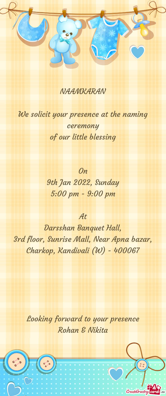 Soni FamilyWe are happy to convey that prayers of Lord Ayyapan and Lord Murugan blessed us with a baby boy