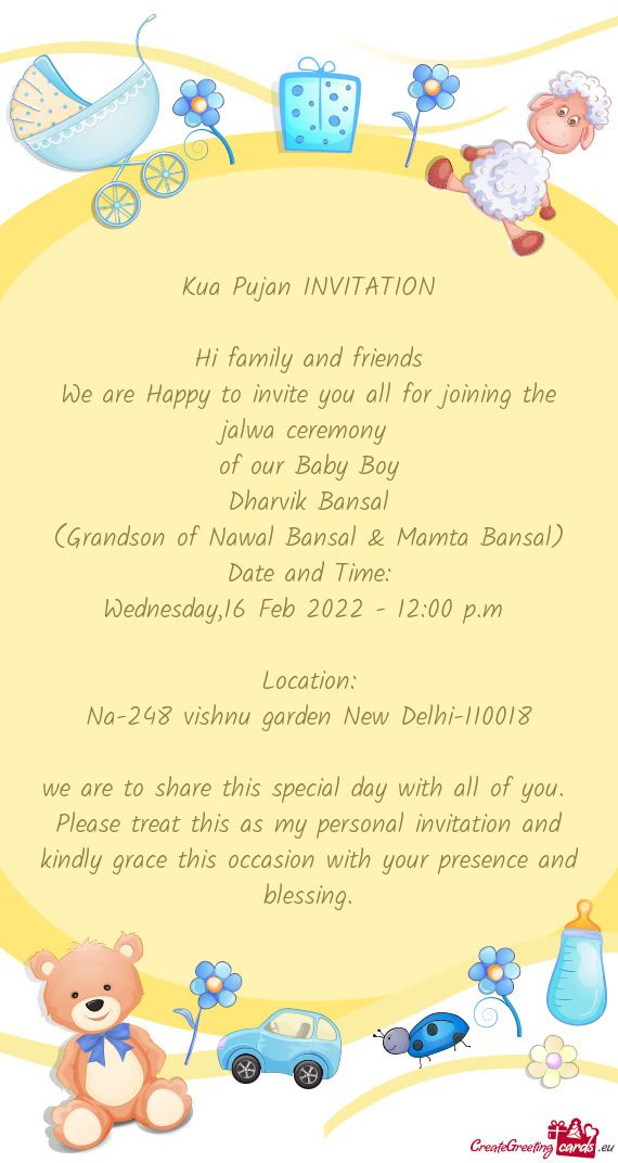 Please treat this as my personal invitation and kindly grace this occasion with your presence and blessing.