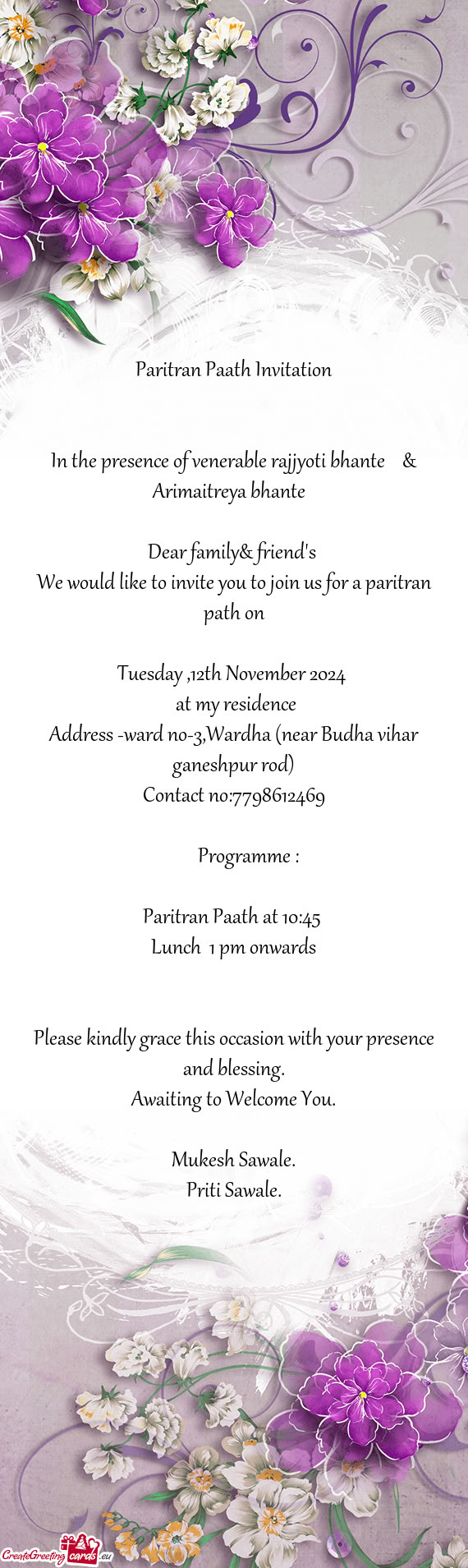 Mr. & Mrs. Haji Muhammad Umer Abdul Latif Katchi request the pleasue of your company at the Quran completion ceremony of our their beloved grand son