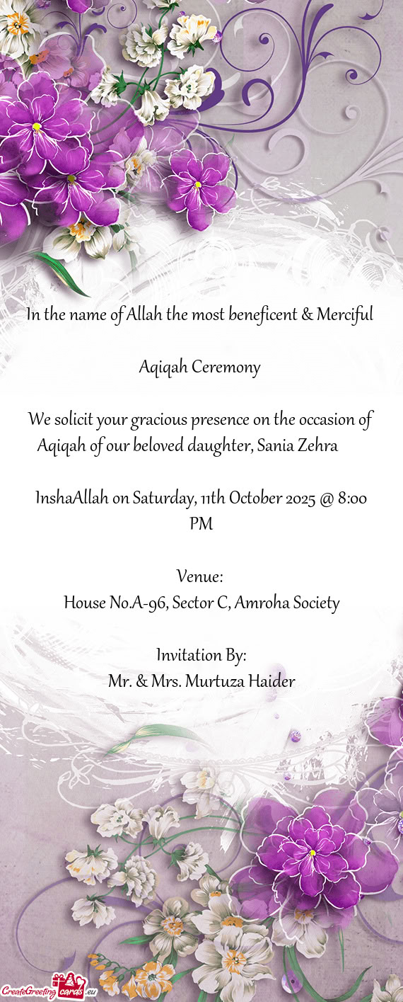 Cordially request the honor of your presence at the Nikah ceremony of our beloved son