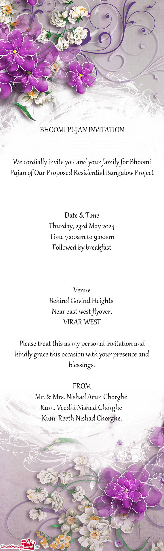 Mrs.Kanta And Mr.Harkesh Chopra cordially invite your esteemed presence for their daughter's Roka Ceremony .