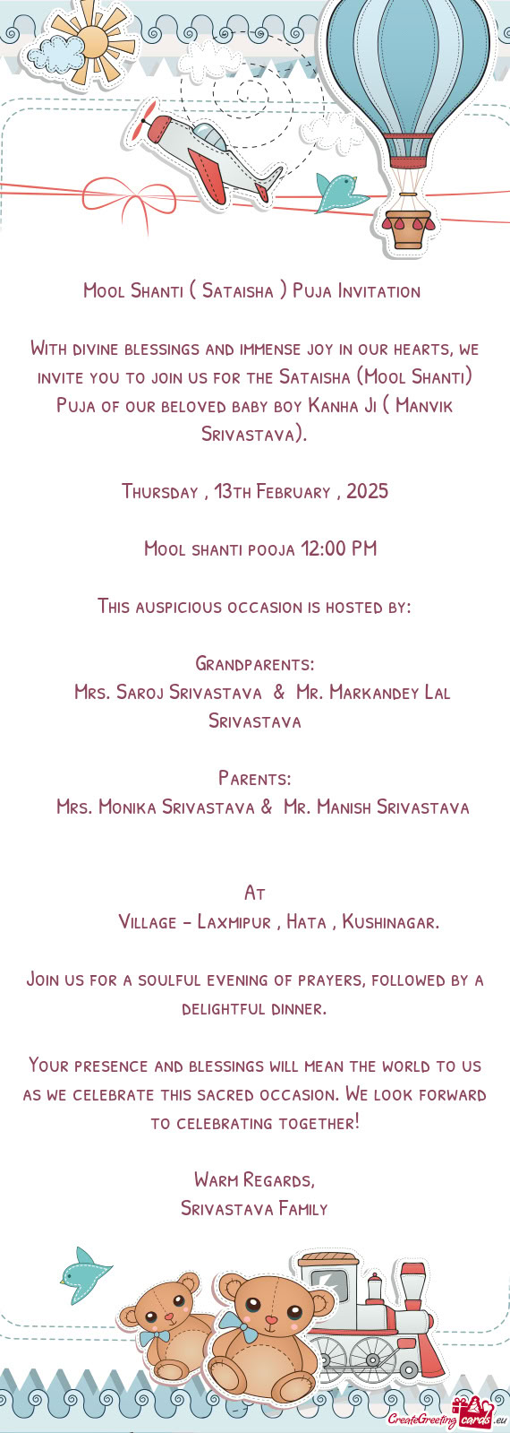 Please treat this as my personal invitation and kindly grace this occasion with your presence and blessing.