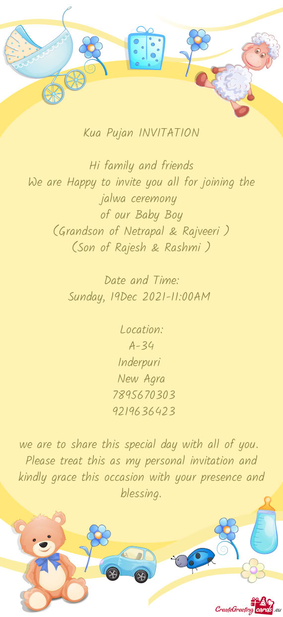 We are Happy to invite you all for joining the Havan ceremony on the occasion
