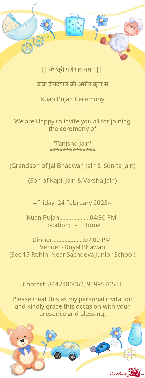 Please treat this as my personal invitation and kindly grace this occasion with your presence and blessing.