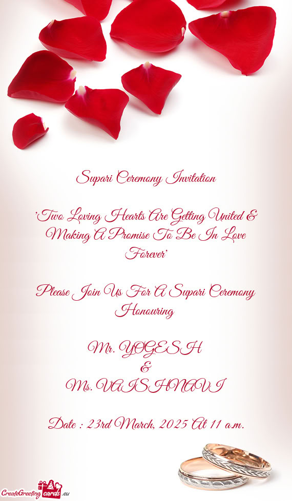 We request the pleasure of your company on the auspicious occasion of the Bangle Ceremony of