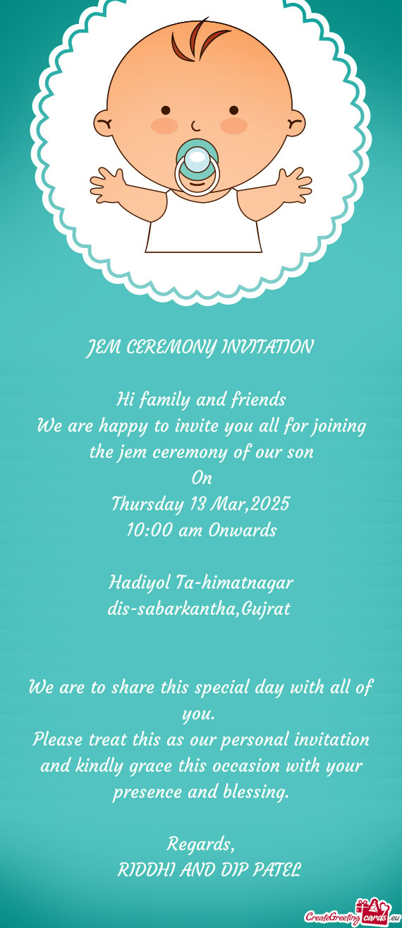 We are Happy to invite you all for joining the Chilla Ceremony of our beloved baby girl.