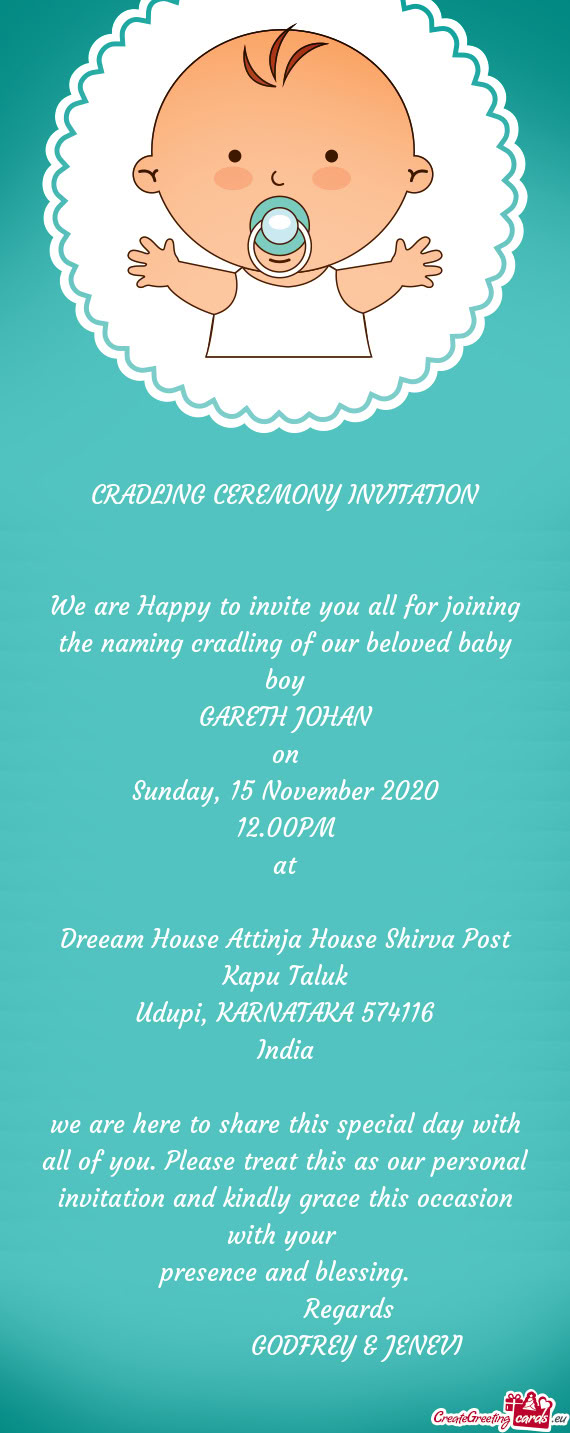 We Cordially invite you all for joining the first Head tonsure & Ear piercing ceremony of our little Princess Tarikaa B