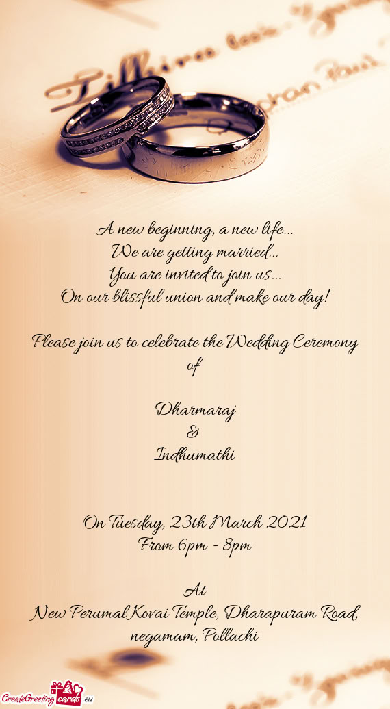 Please treat this as my personal invitation and join us to make our golden moments precious by your charming presence